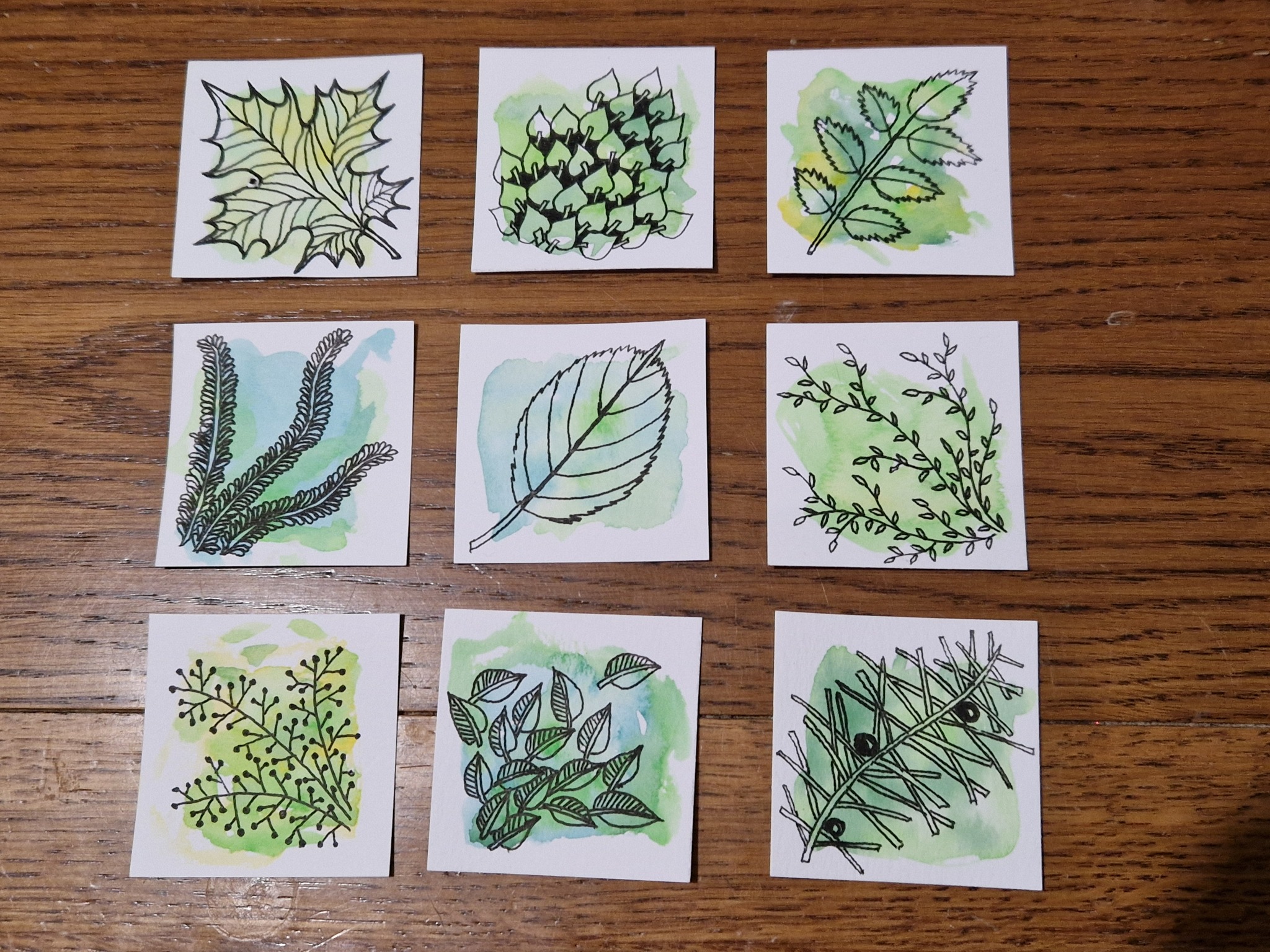 Slow meditative art style with leaf shadows, using various art tools to create colour and pattern. Suitable for all levels, including complete beginners.