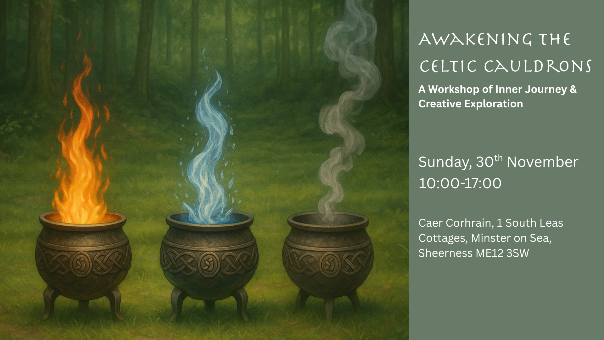 Step into the wisdom of Celtic tradition and awaken your inner cauldrons of energy, balance, and transformation. In Celtic lore, the Three Cauldrons - Warming, Motion, and Wisdom - represent our vitality, emotions, creativity, and spiritual insight. During this workshop we will work together to explore them directly through sound, art, and journeying.